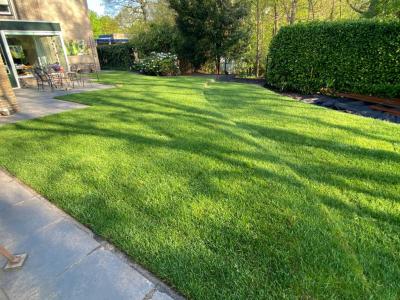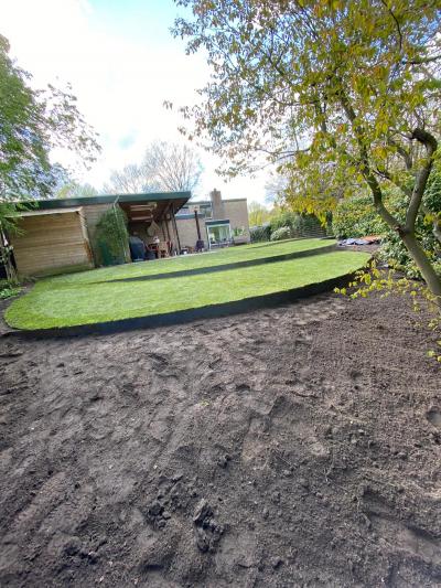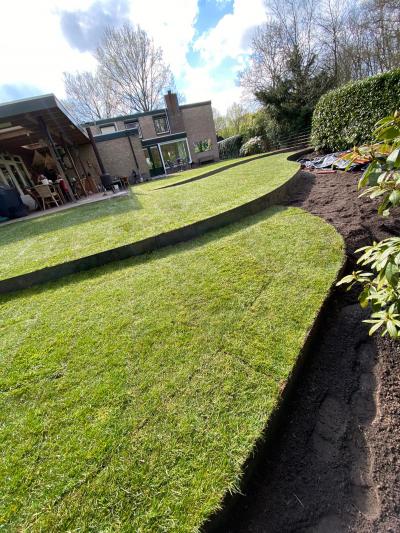 - Het gras is aangebracht in verschillende hoogtes d.m.v. corten stalen randen