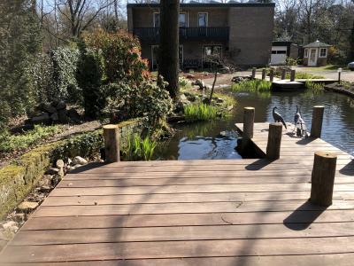 Een landelijk aangelegde vijver met steigers, ook dit is mogelijk in de nieuwbouw.