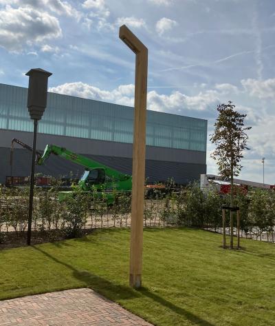 - Landelijke eikenhouten lantaarnpalen geplaatst