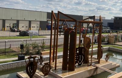 - De vijver is opgebouwd met keerwanden en betonvloer.